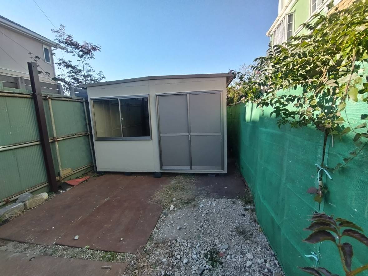 神奈川県横浜市 パネルハウス プレハブ 会社倉庫 神奈川県横浜市 パネルハウス プレハブ 会社倉庫神奈川県横浜市 パネルハウス プレハブ 会社倉庫神奈川県横浜市 パネルハウス プレハブ 会社倉庫神奈川県横浜市 パネルハウス プレハブ 会社倉庫神奈川県横浜市 パネルハウス プレハブ 会社倉庫 利用用途会社倉庫仕様新品構造軽量形鋼 t:1.6~2.3屋根溶融亜鉛鋼板 t=0.6壁パネル断熱パネル t=30表面カラー鋼板 t=0.35天井パネル断熱パネル t=20表面カラー鋼板 t=0.35床耐水合板 t=12パネコート t=12mm色:イエロー開口部・ドアアルミサッシ 引違い(パネル/パネル)窓アルミサッシ 引違い(透明ガラス)換気扇羽根200Φウェザーカバー付 PH-D2.0×4.0)