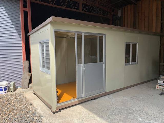 神奈川県小田原市 パネルハウス プレハブ 作業場詰所 神奈川県小田原市 パネルハウス プレハブ 作業場詰所神奈川県小田原市 パネルハウス プレハブ 作業場詰所神奈川県小田原市 パネルハウス プレハブ 作業場詰所神奈川県小田原市 パネルハウス プレハブ 作業場詰所神奈川県小田原市 パネルハウス プレハブ 作業場詰所 利用用途作業場詰所仕様中古品構造軽量形鋼 t=1.6~2.3屋根・壁パネル溶融亜鉛鋼板 t=0.6床パネコート t=12mm開口部・ドアアルミサッシ 引違い窓アルミサッシ 引違い OKL(1.0×3.0)_rotated