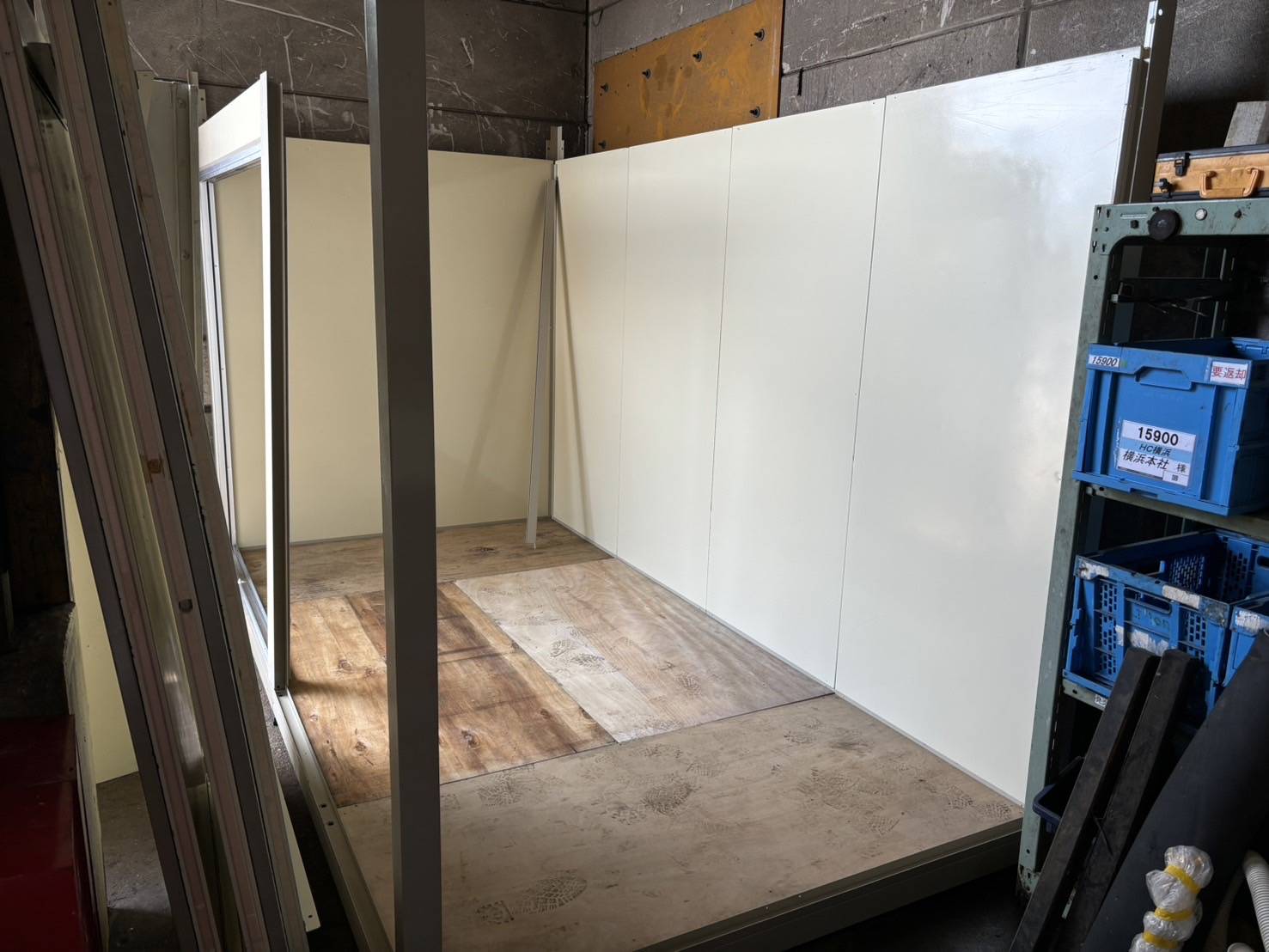 神奈川県横浜市 パネルハウス プレハブ 会社事務所 神奈川県横浜市 パネルハウス プレハブ 会社事務所神奈川県横浜市 パネルハウス プレハブ 会社事務所神奈川県横浜市 パネルハウス プレハブ 会社事務所神奈川県横浜市 パネルハウス プレハブ 会社事務所神奈川県横浜市 パネルハウス プレハブ 会社事務所 利用用途会社事務所仕様中古品構造軽量形鋼 t=1.6~2.3屋根・壁パネル断熱パネル t=40表面カラー鋼板 t=0.4床耐水合板 t=12mm + パネコート t=12mm開口部・ドアアルミサッシ 引違い窓アルミサッシ 引違い換気扇羽根200Φウェザーカバー付 MR(1.0×2.0)