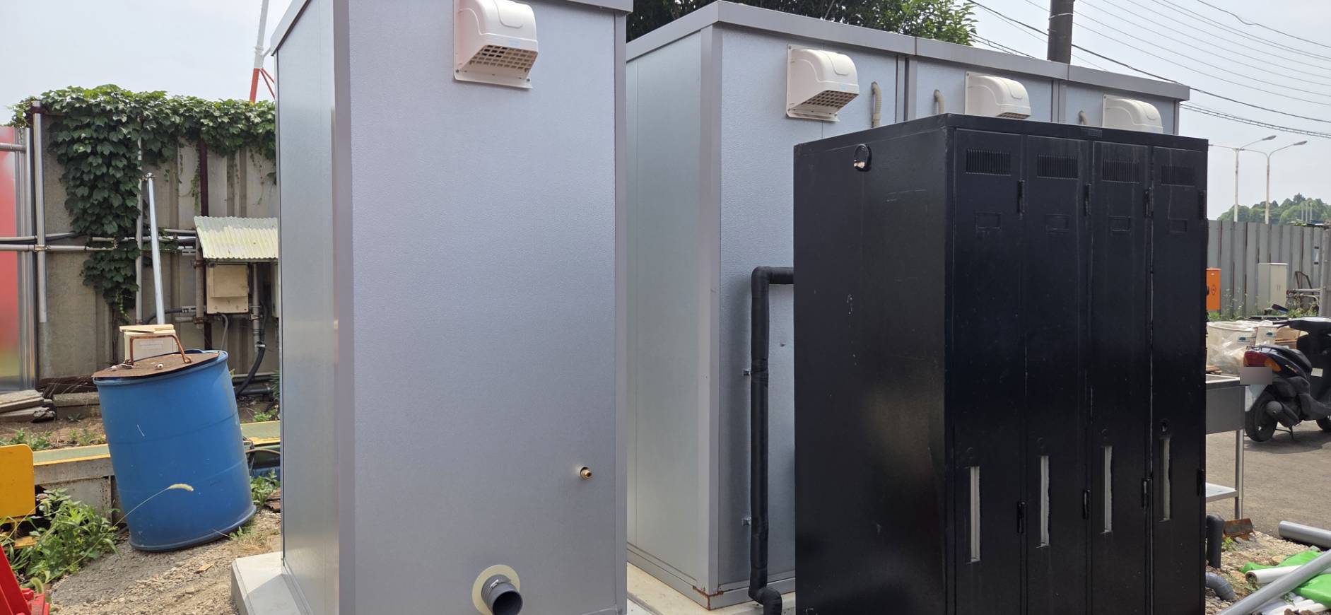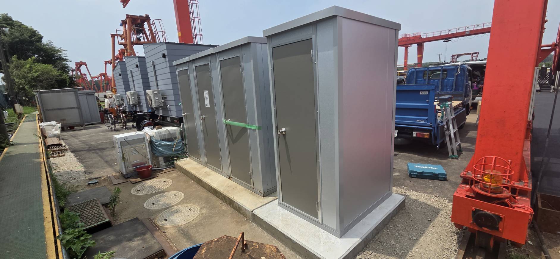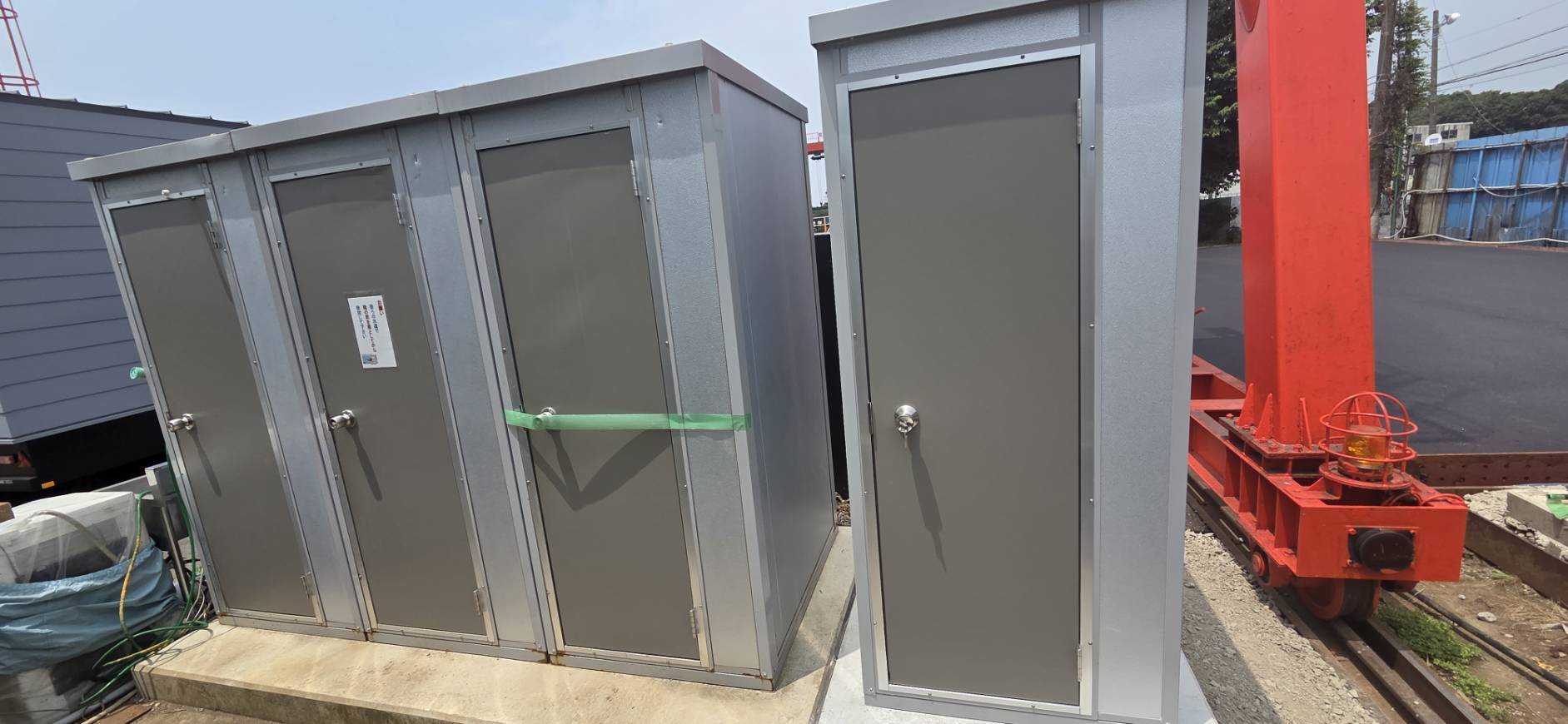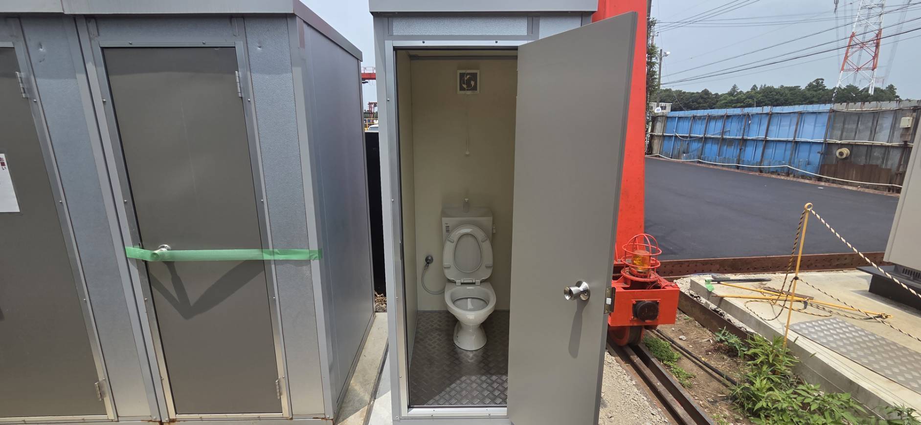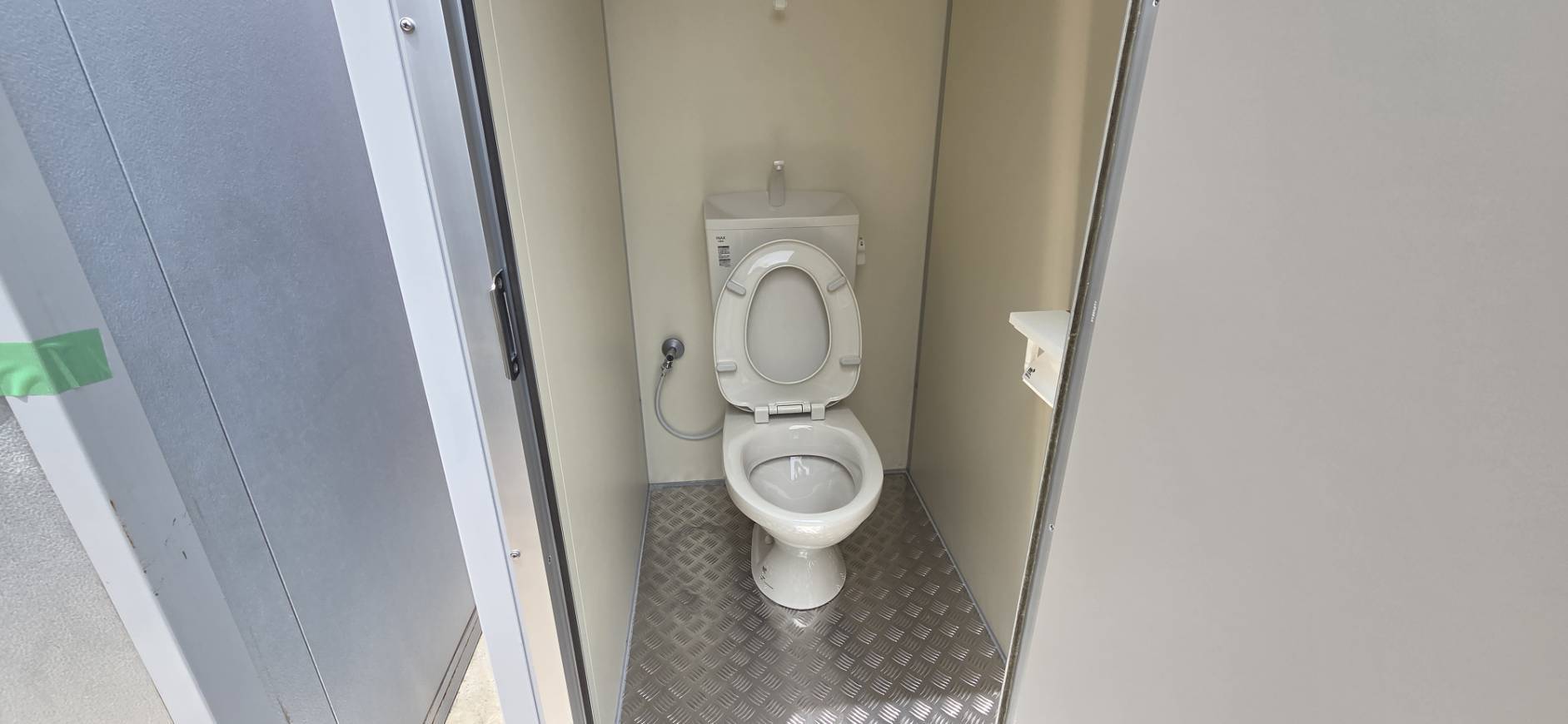 千葉県白井市 仮設トイレ 作業場用トイレ 千葉県白井市 仮設トイレ 作業場用トイレ千葉県白井市 仮設トイレ 作業場用トイレ千葉県白井市 仮設トイレ 作業場用トイレ千葉県白井市 仮設トイレ 作業場用トイレ千葉県白井市 仮設トイレ 作業場用トイレ千葉県白井市 仮設トイレ 作業場用トイレ 利用用途作業場用トイレ仕様新品構造軽量形鋼 t=1.0~1.6床根太鋼製@350壁断熱パネル t=40表面カラー鋼板 t=0.4屋根(天井)断熱パネル t=20表面カラー鋼板 t=0.4扉(ドア)アルミ片開 W570 × H1810床(フロア)耐水合板 t=12 + アルミ稿鋼板 t=2.5便器タンク密結式洋風便器換気パイプファン 100ΦペーパーホルダーW型予備棚付き給水・排水壁給水壁排水電源別途 ブーストイレMT-N (パイプファン付、アルミ縞鋼板)