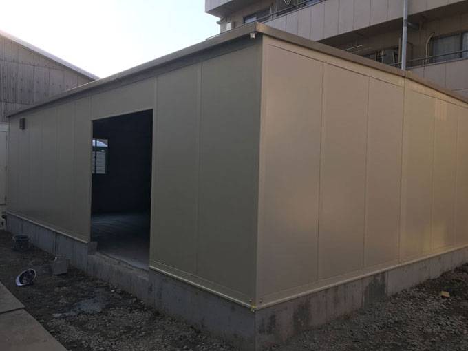 神奈川県横浜市 パネルハウス(プレハブ) 仮設事務所自社生産、自社施工のパネルハウス・快適トイレならオーダ工業 神奈川県横浜市 パネルハウス(プレハブ) 仮設事務所神奈川県横浜市 パネルハウス(プレハブ) 仮設事務所神奈川県横浜市 パネルハウス(プレハブ) 仮設事務所神奈川県横浜市 パネルハウス(プレハブ) 仮設事務所神奈川県横浜市 パネルハウス(プレハブ) 仮設事務所 利用用途仮設事務所品名・型式PHD 3.0k × 5.0k屋根・破風軽量形鋼 t=1.6~2.3屋根・壁パネル断熱パネル t=30 表面カラー鋼板 t=0.4硬質ウレタンフォーム充填床耐水合板12㎜ + カラー合板12㎜開口部・ドアフラッシュドア 片開き窓アルミサッシ 引違い換気扇羽根200φ yokohama_tuduki